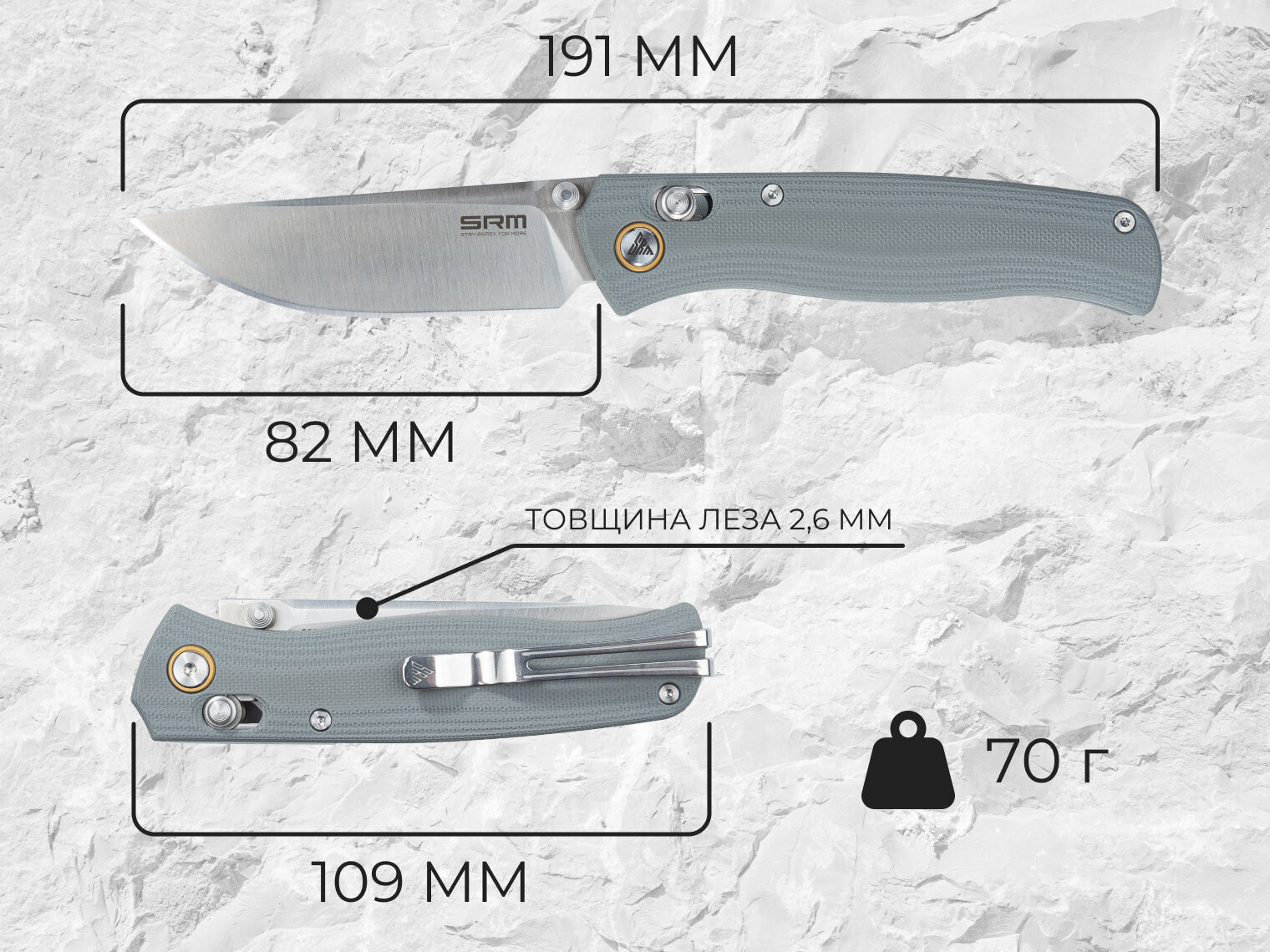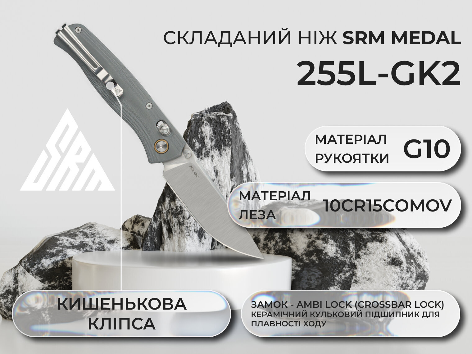 Опис складаного ножа SRM Medal 255L-GK2, сірого: