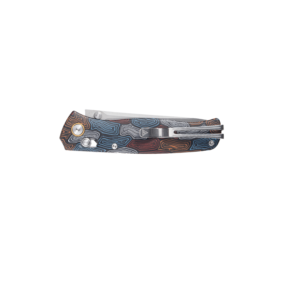 Одна з особливостей ножа — кольорове руківʼя. Яскраві візерунки надають інструменту преміального вигляду, завдяки чому він стане естетичним поповненням колекції поціновувачів оригінальних ножів.