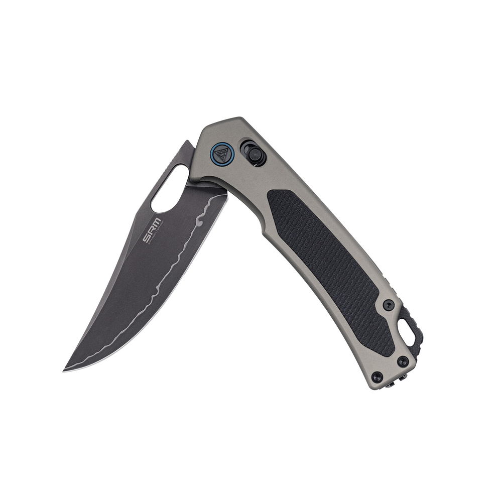 SRM Retriever 9203-AK2 — це мисливський складаний ніж з клинком Clip Point. Загострений кінчик дозволяє виконувати проколи з високою точністю, а довга пряма кромка демонструє акуратне різання матеріалів різної щільності.