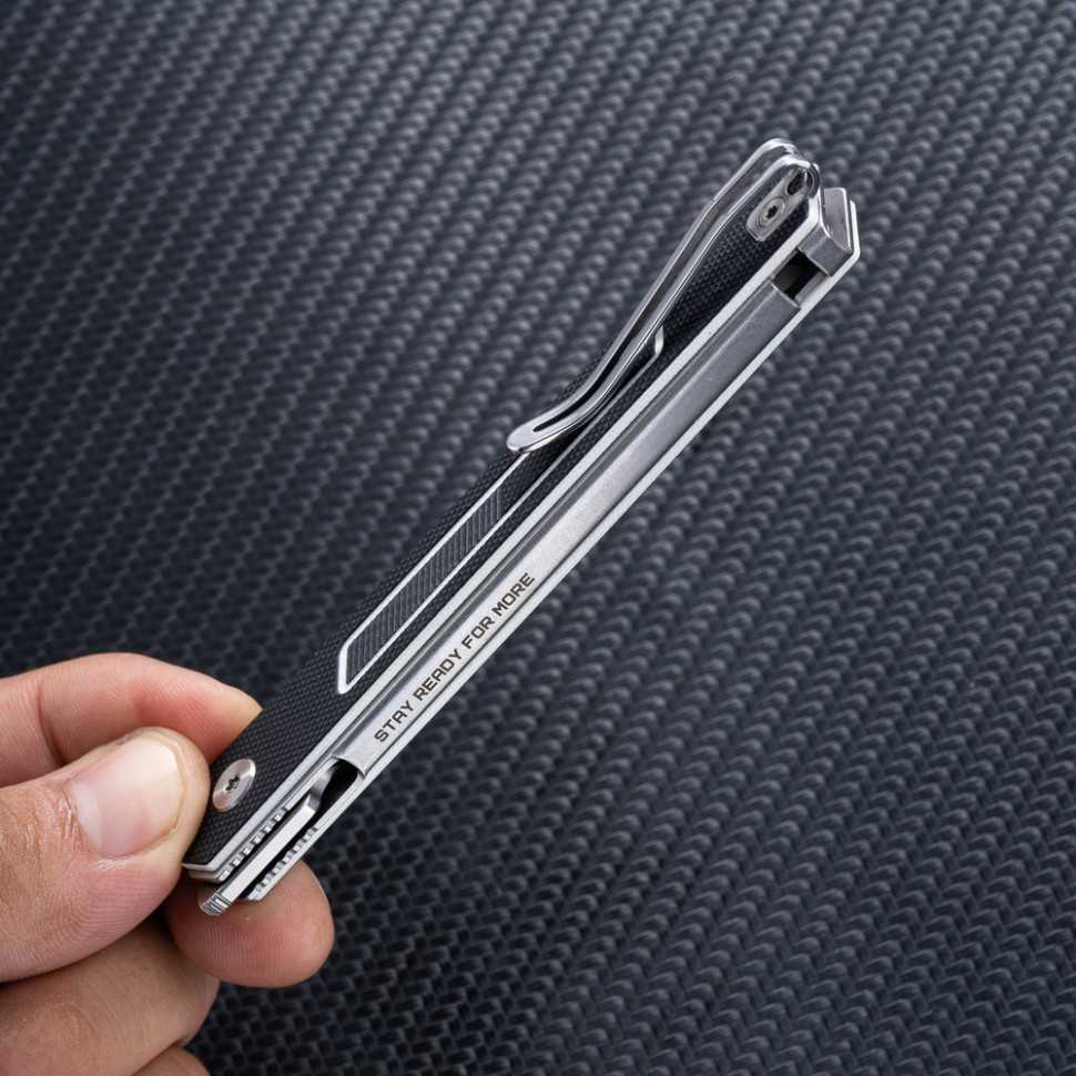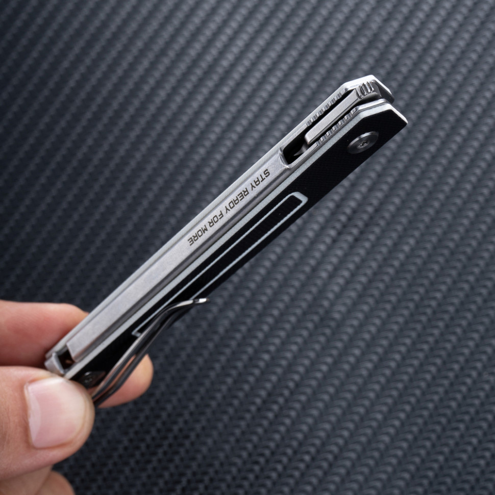 З правого боку руківʼя закріплено кліпсу Tip-Up . Затискач передбачає непомітне носіння інструмента, дозволяючи повністю сховати його у кишені.