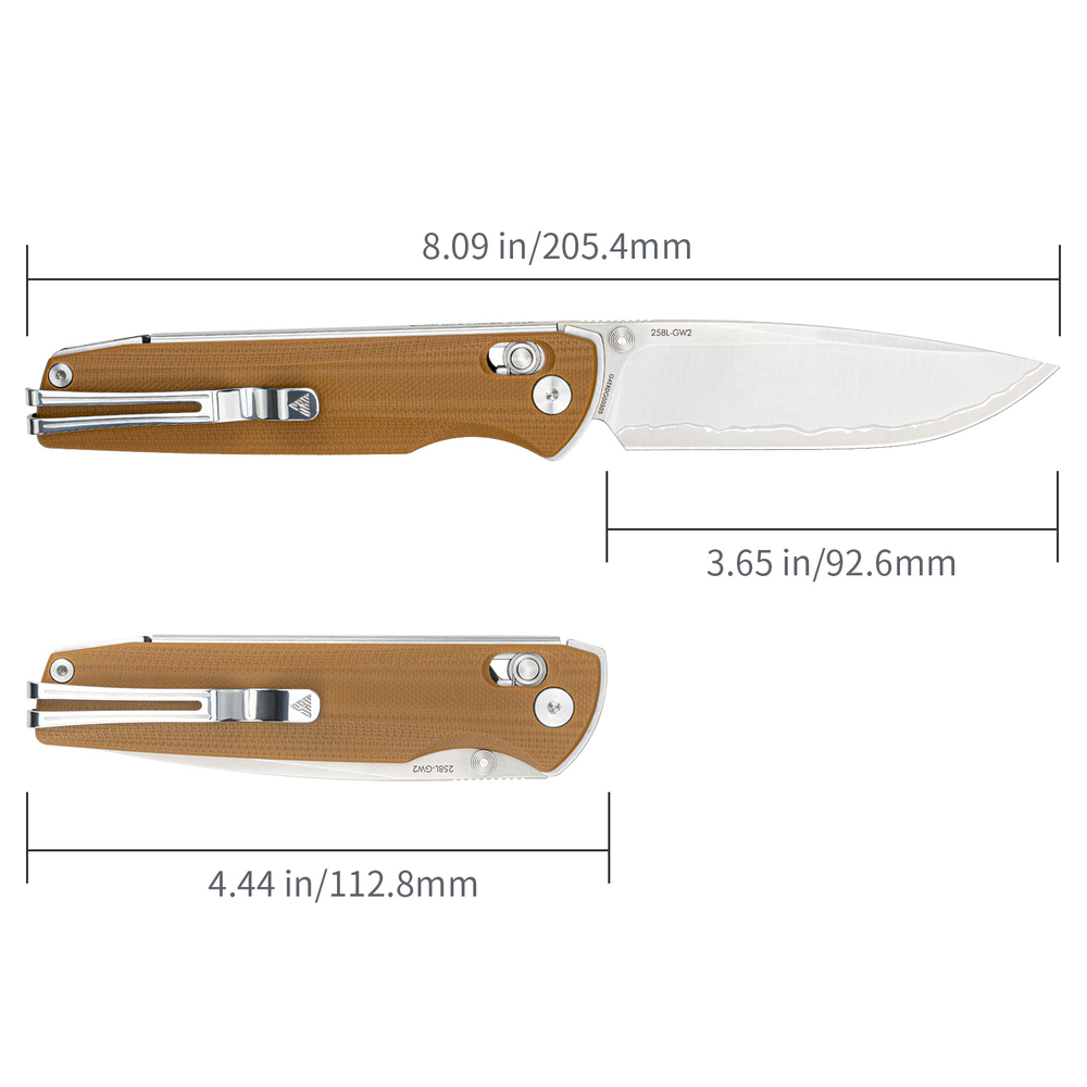 SRM 258L-GW2 входить до серії Terrier, яка є однією з бестселерів бренду. Це кишеньковий ніж для повсякденного носіння, оптимізований під широкий спектр EDC-завдань.