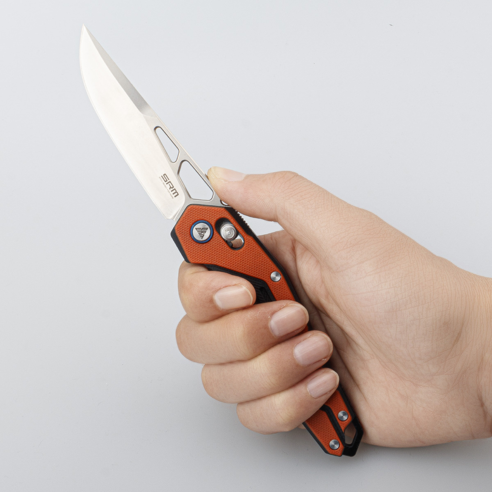 Опис ножа складаного туристичного SRM Mecha(8.3 см) D2 / G10 помаранчевого: