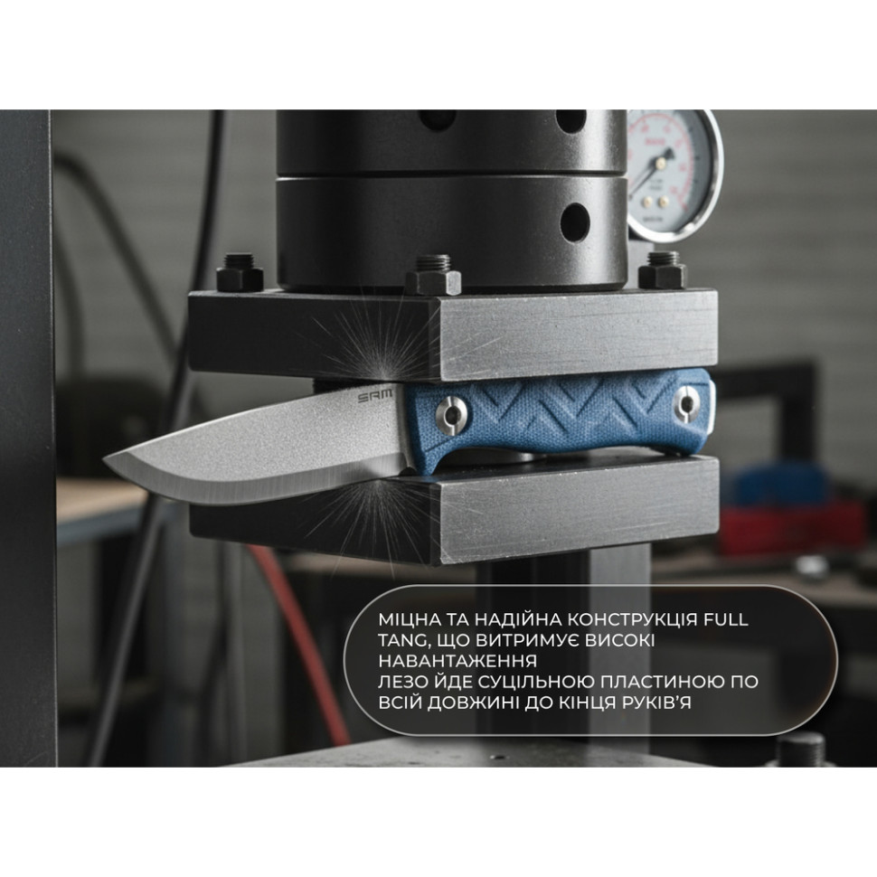 Фіксований ніж SRM 702T-ME створений для завдань на відкритому повітрі: бушкрафт, туризм, робота по дереву та силове різання щільних матеріалів. Цілісна конструкція має передбачувану жорсткість і витривалість, тому інструмент витримує високі навантаження, зокрема при поперечних зусиллях.