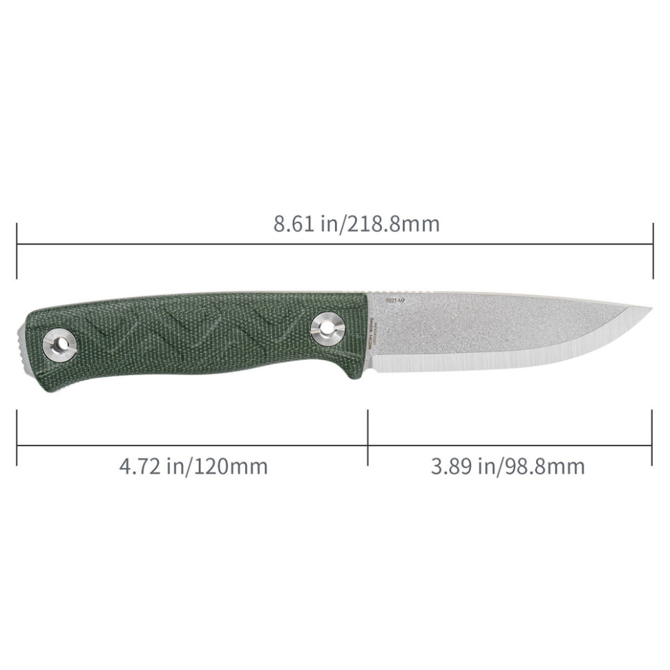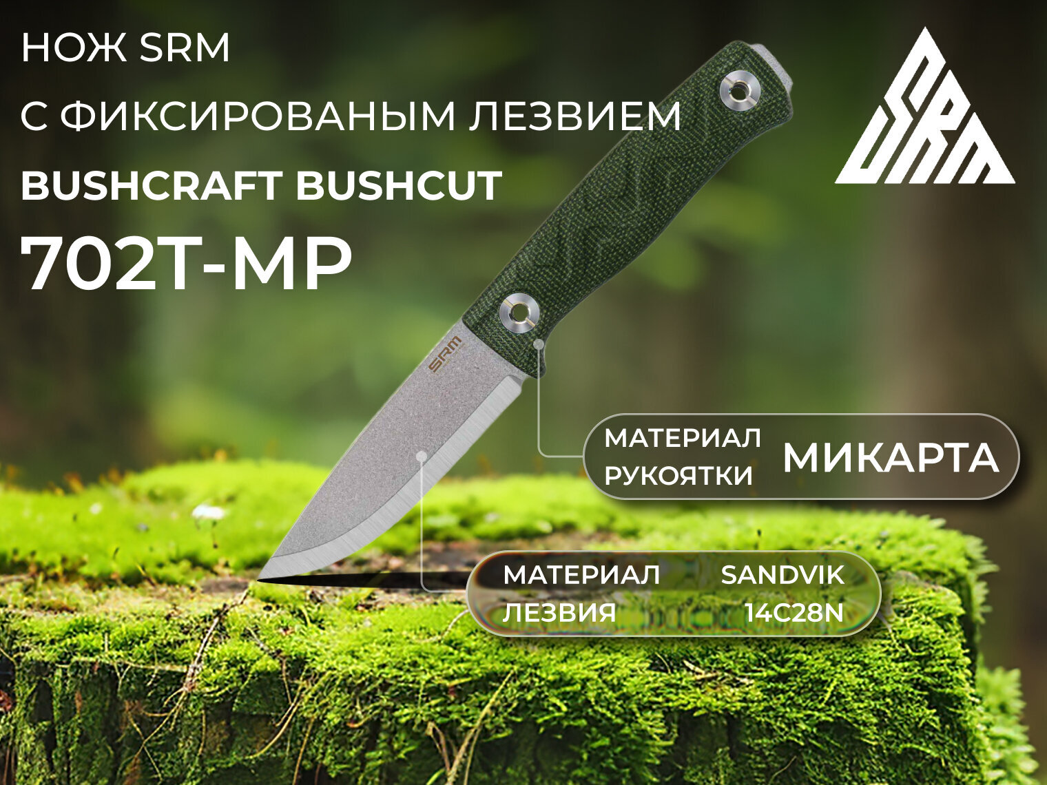 Фиксированный нож SRM 702T-MP создан для задач на открытом воздухе: бушкрафт, туризм, работа по дереву и силовой рез по плотным материалам. Цельная конструкция обладает предсказуемой жесткостью и выносливостью, поэтому инструмент выдерживает высокие нагрузки, в том числе при поперечных усилиях.