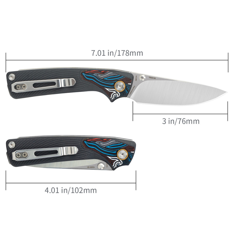 Модель 106M-GK имеет клинок Drop Point с длинной режущей кромкой, которая уверенно справляется с аккуратным резом. Вы также можете совершать точные проколы с помощью тонкого кончика.