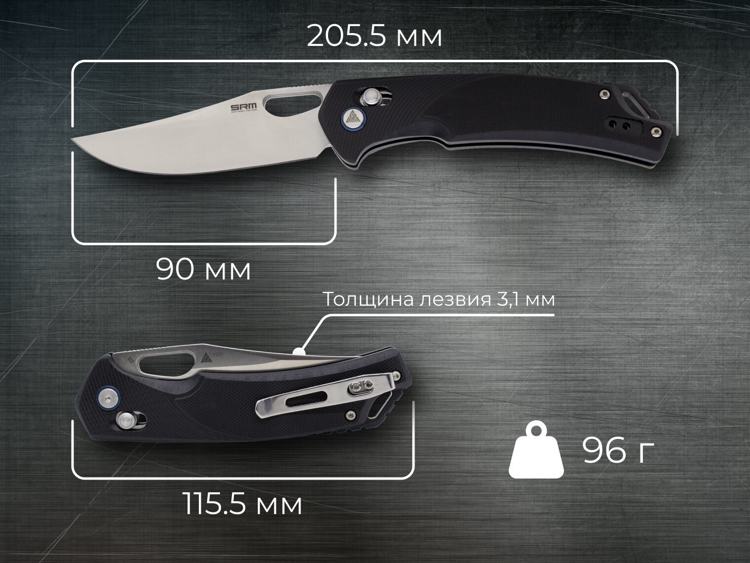 Описание складного ножа SRM Retriever 9201, черного: