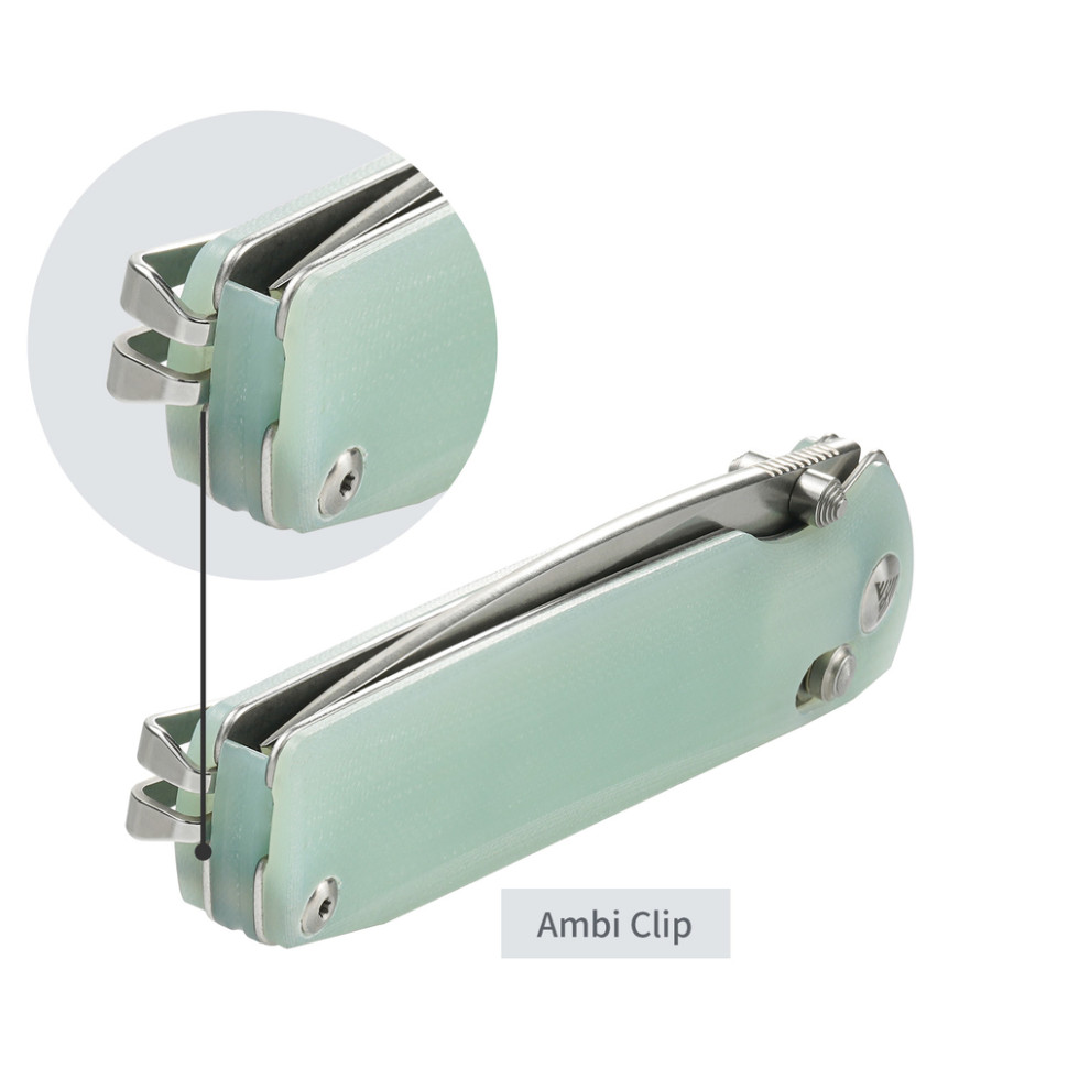 Открывать нож можно правой или левой рукой благодаря двустороннему шпеньку. Осевой узел собран на керамических подшипниках, благодаря чему ход клинка легкий и без заминок даже при частом цикле «открыть-закрыть».